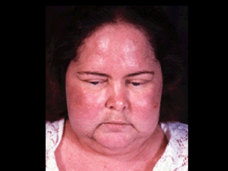 - Facie hipotiroidia o mixedematosa: destaca la poca expresividad del rostro, asociado a rasgos abotagados (viene de “hinchazón”), aspecto pálido amarillento, piel áspera y pastosa, pelo escaso, edema periorbitario y macroglosia; con alguna frecuencia se pierden las cejas en los lados externos. Se asocia a cuadros en los que existe un déficit de hormona tiroidea.