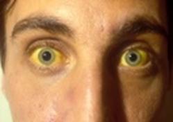 - Facies ictérica. Consiste en la coloración amarilla de la cara y de las escleróticas por aumento de la bilirrubina en sangre; se ve en ictericias hemolíticas, por retención de la bilirrubina y por obstáculo en su eliminación.